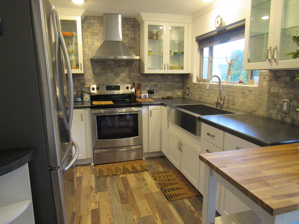It is unfortunate but we see homeowners stranded by other contractor all too often, this local Artist was no different! This classic 1950's home In Felida called out for a design that honored the past character while bringing in a new modern warmth. Maximizing depth and space with this small kitchen was accomplished by using bright cabinets and glass fronts on all upper cabinetry. Our client is so excited and grateful to be back in their kitchen and to have found a trustful partner to get this project over the finish line.